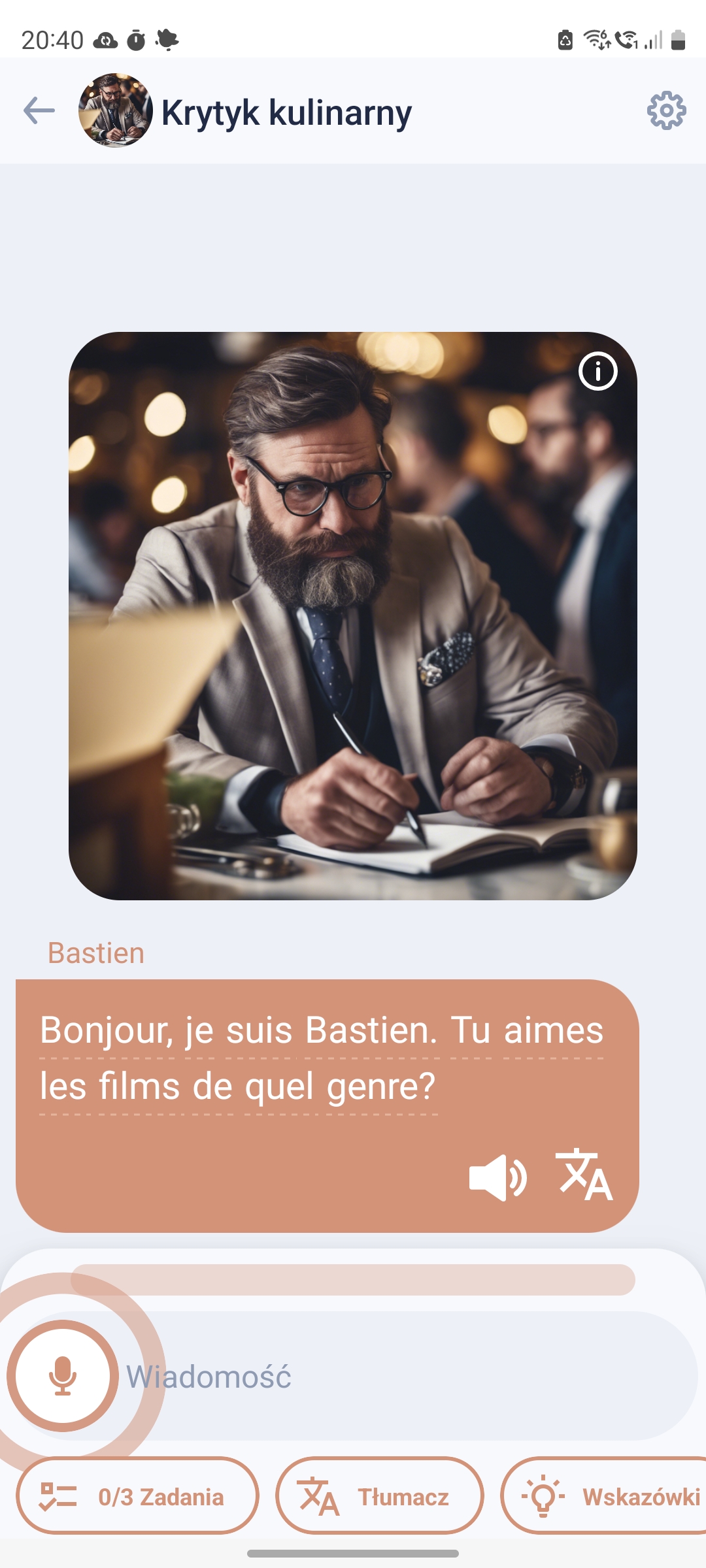 Najpierw wybierasz interesujący Cię temat, a później odbywasz krótką rozmowę z lektorem AI. Dodatkowo taką, w której to lektor prowadzi rozmowę za Ciebie, a Twoją rolą jest tylko odpowiadać na pytania. Oczywiście, jak w rozmowie, możesz zadawać pytania i dodawać od siebie na cokolwiek tylko masz ochotę.