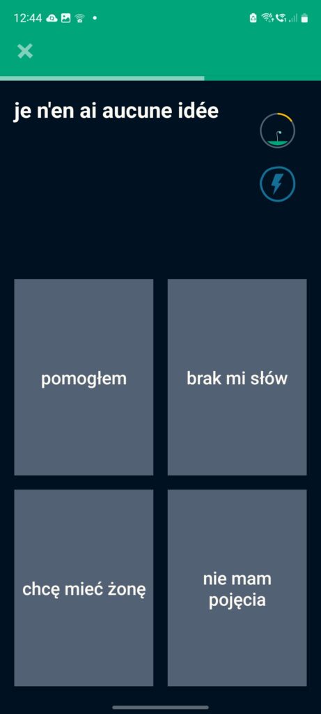 Jest opcja szybkiego ćwiczenia słownictwa, ale w niej trzeba wybrać znaczenie z czterech wariantów, a nie przywołać z pamięci. Przywołanie z pamięci jest znacznie trudniejsze, ale lepsze dla procesu nauki.