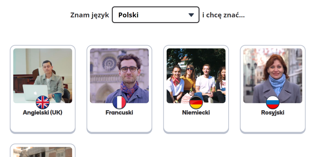 Języki, których możesz uczyć się po polsku to: angielski, niemiecki, rosyjski, francuski i hiszpański.