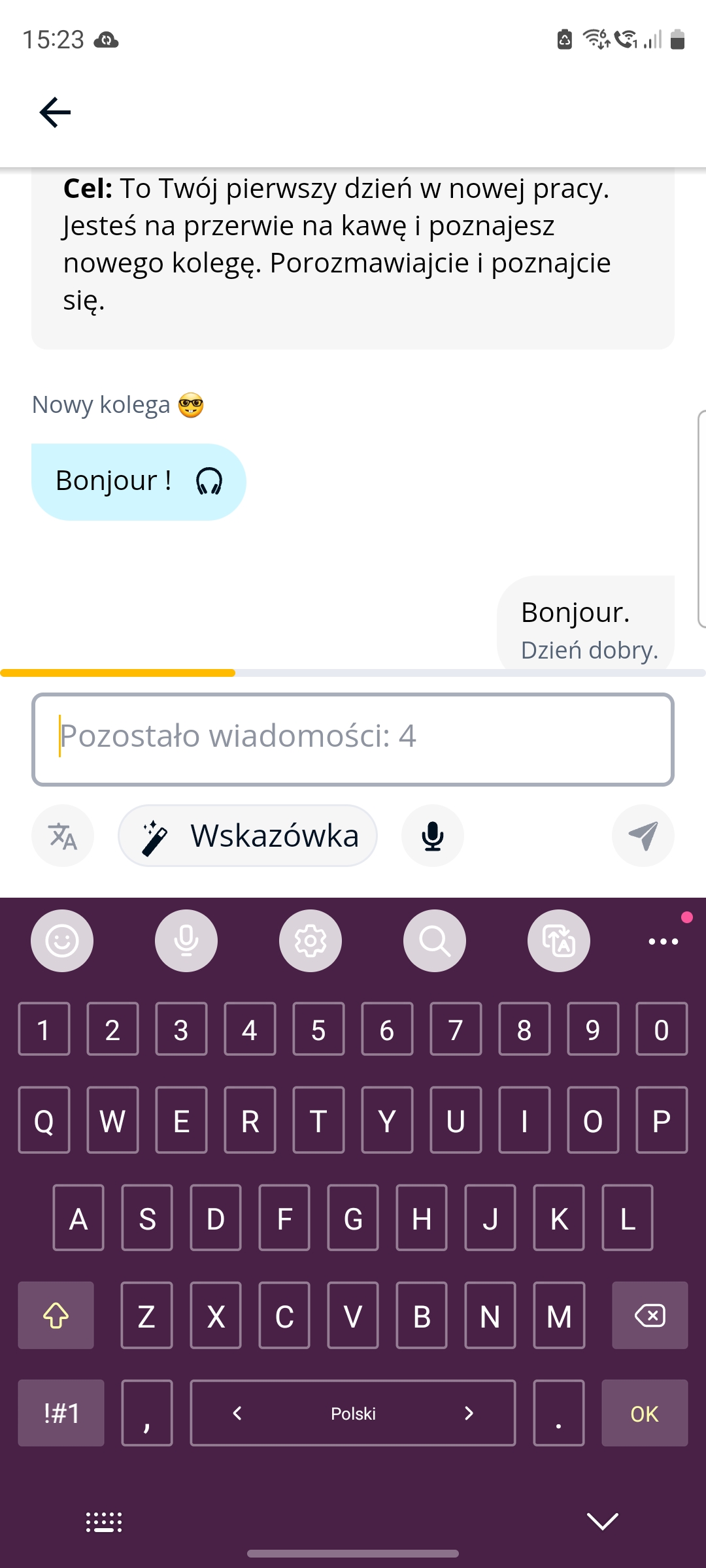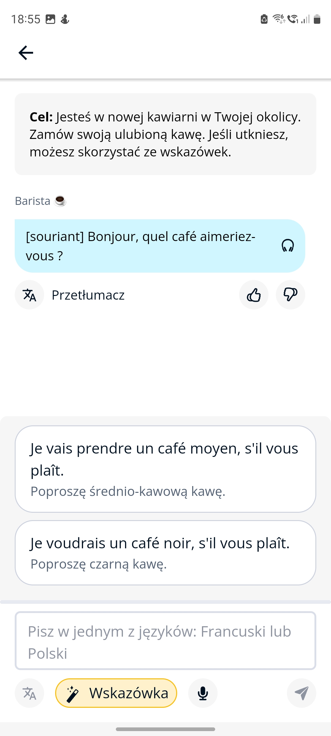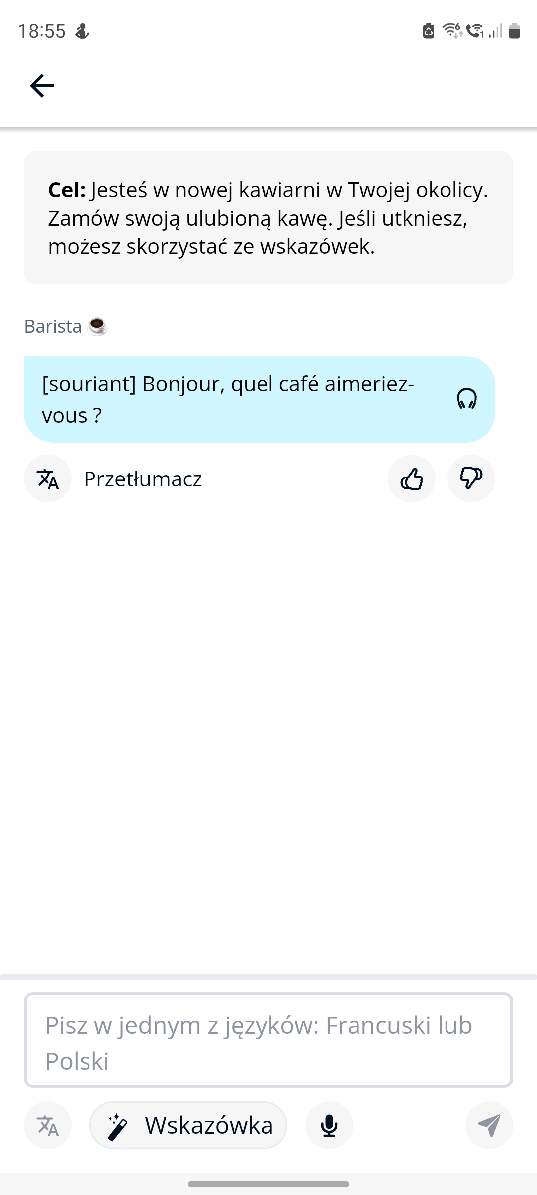 Rozmowy są tak krótkie, że można bez wysiłku wcisnąć je do planu dnia. Masz też wszystkie dobroci sztucznej inteligencji pod ręką: wskazówki, tłumaczenia i poprawianie błędów.
